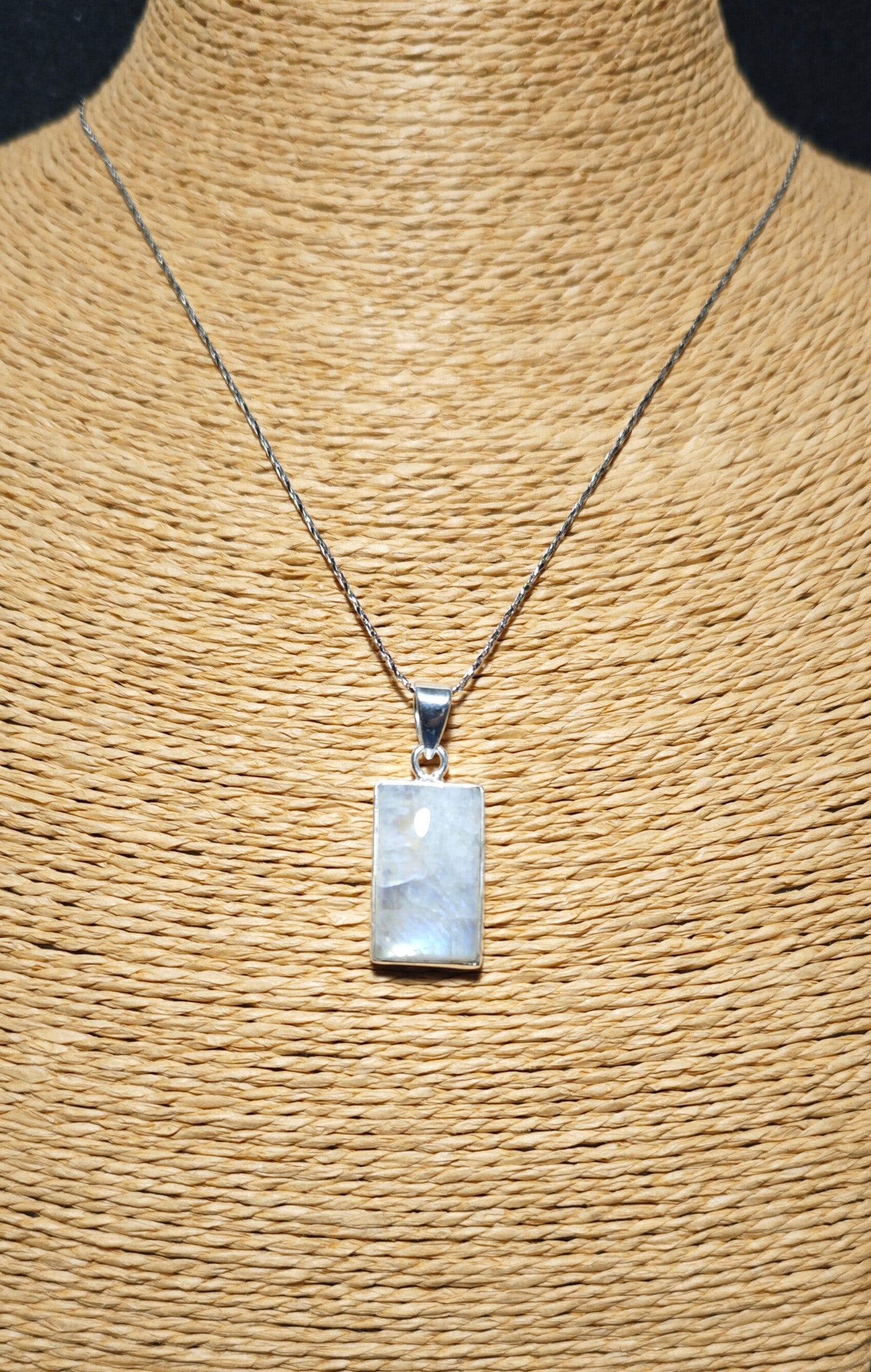 Magnifique Pendentif en LABRADORITE BLANCHE Sertie en Argent 925